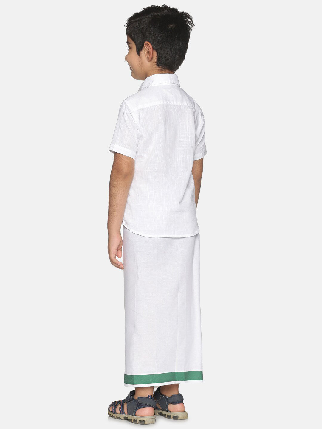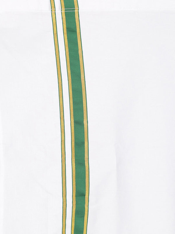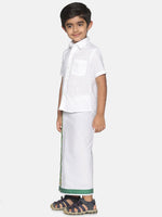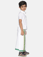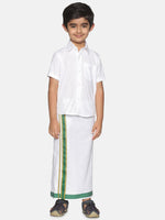 Sethukrishna Boys White & Green Pure Cotton Shirt with Dhoti
