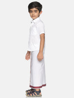 Sethukrishna Boys White & Red Pure Cotton Solid Shirt and Veshti Set