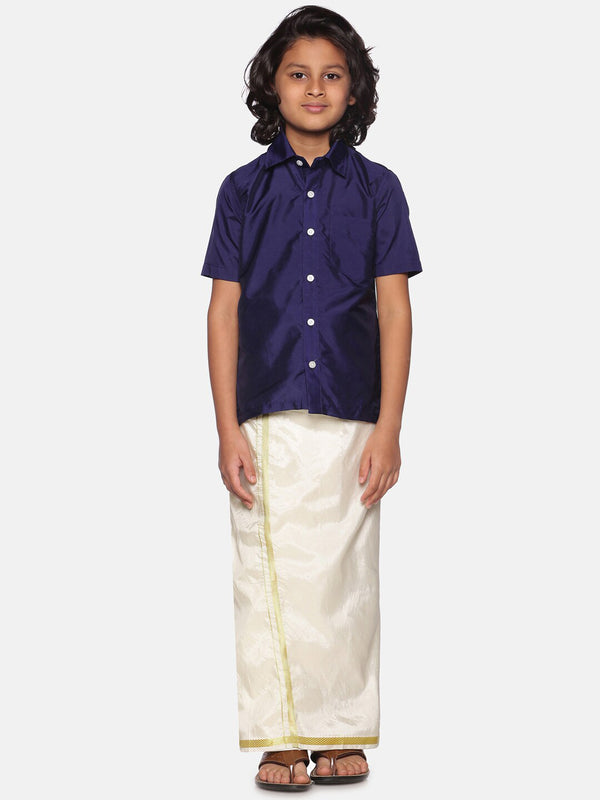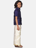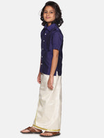 Sethukrishna Navy Blue & White Shirt with Dhoti For Boys