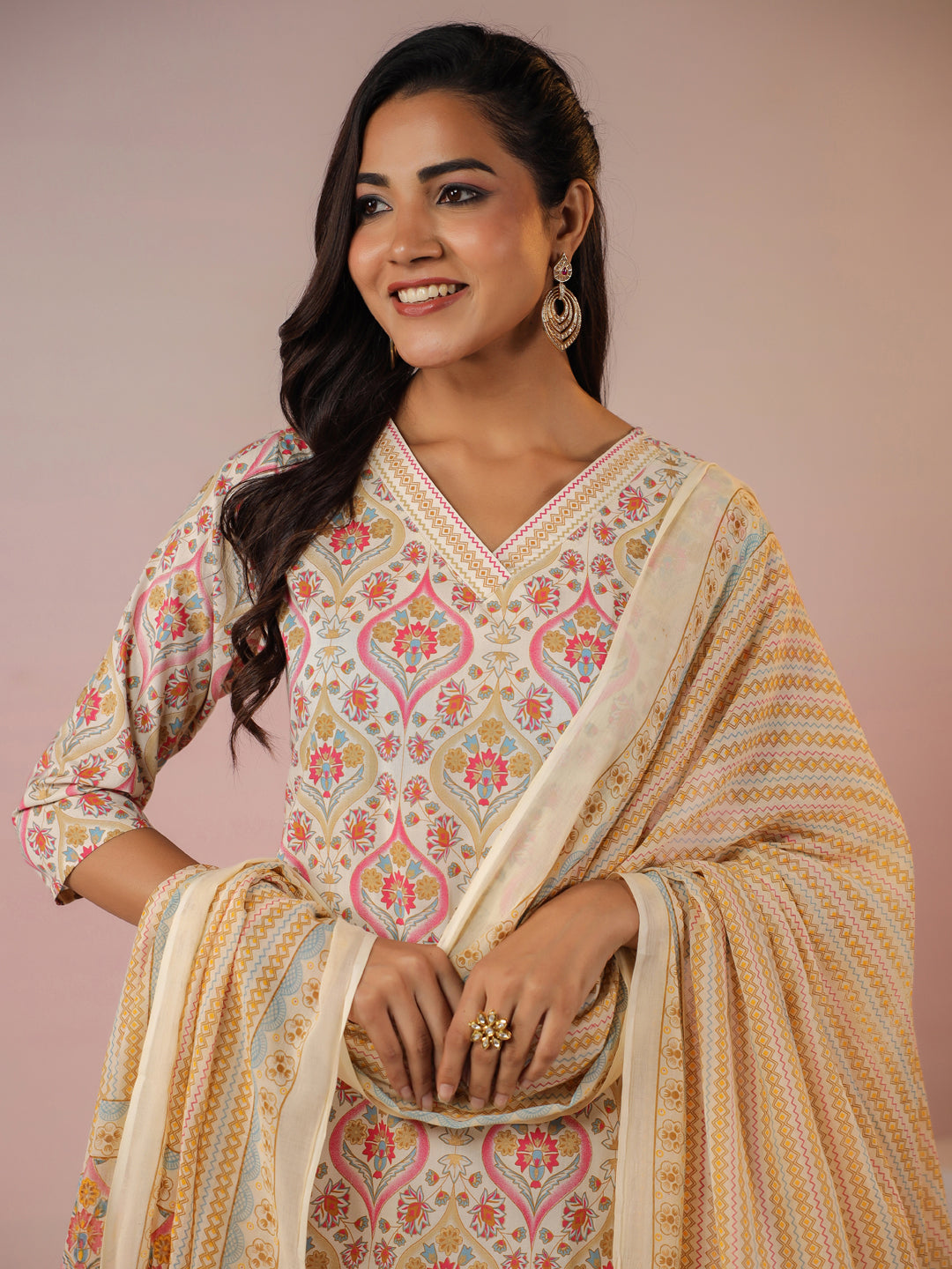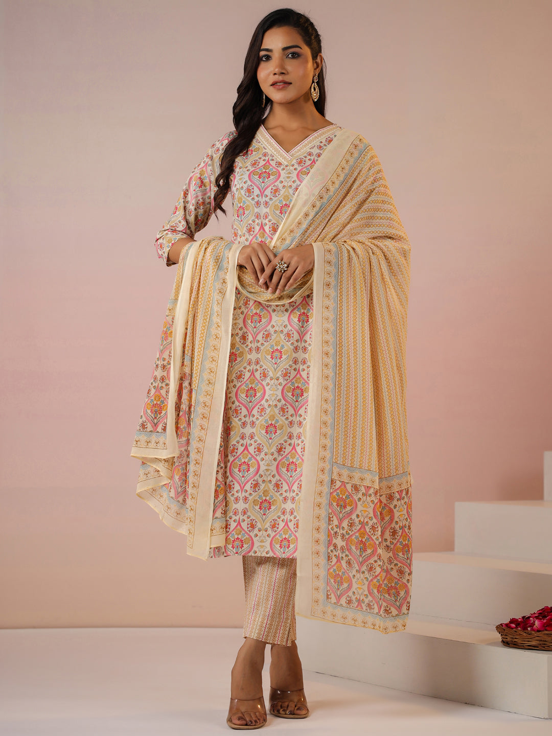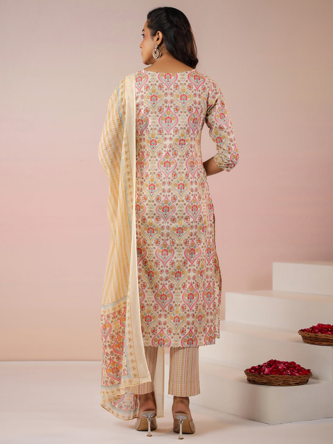 Janasya Beige Cambric Ethnic Motifs Kurta,Bottom & Dupatta - Distacart