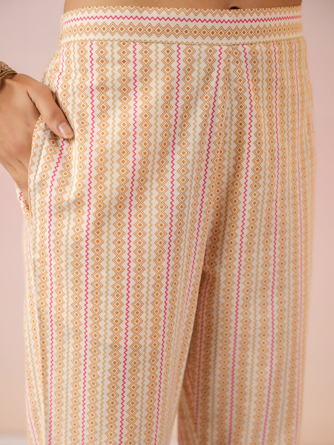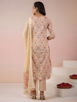 Janasya Beige Cambric Ethnic Motifs Kurta,Bottom & Dupatta
