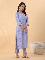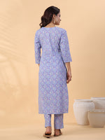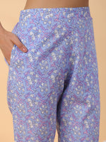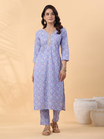 Janasya Ice Blue Cambric Floral Kurta Set - XS