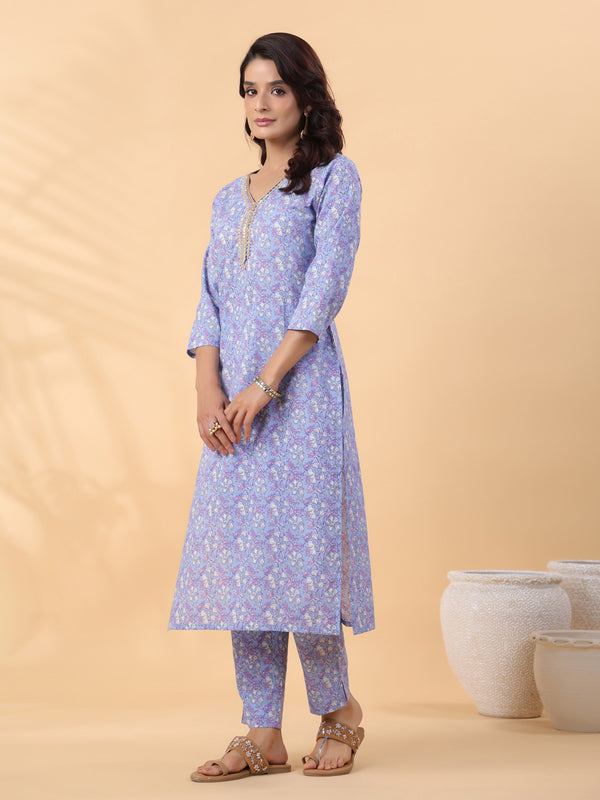 Janasya Ice Blue Cambric Floral Kurta SetAbout the Product: Top Style Type: Regular Top Fabric: Cambric Top Primary Color: Ice Blue Top Pattern...