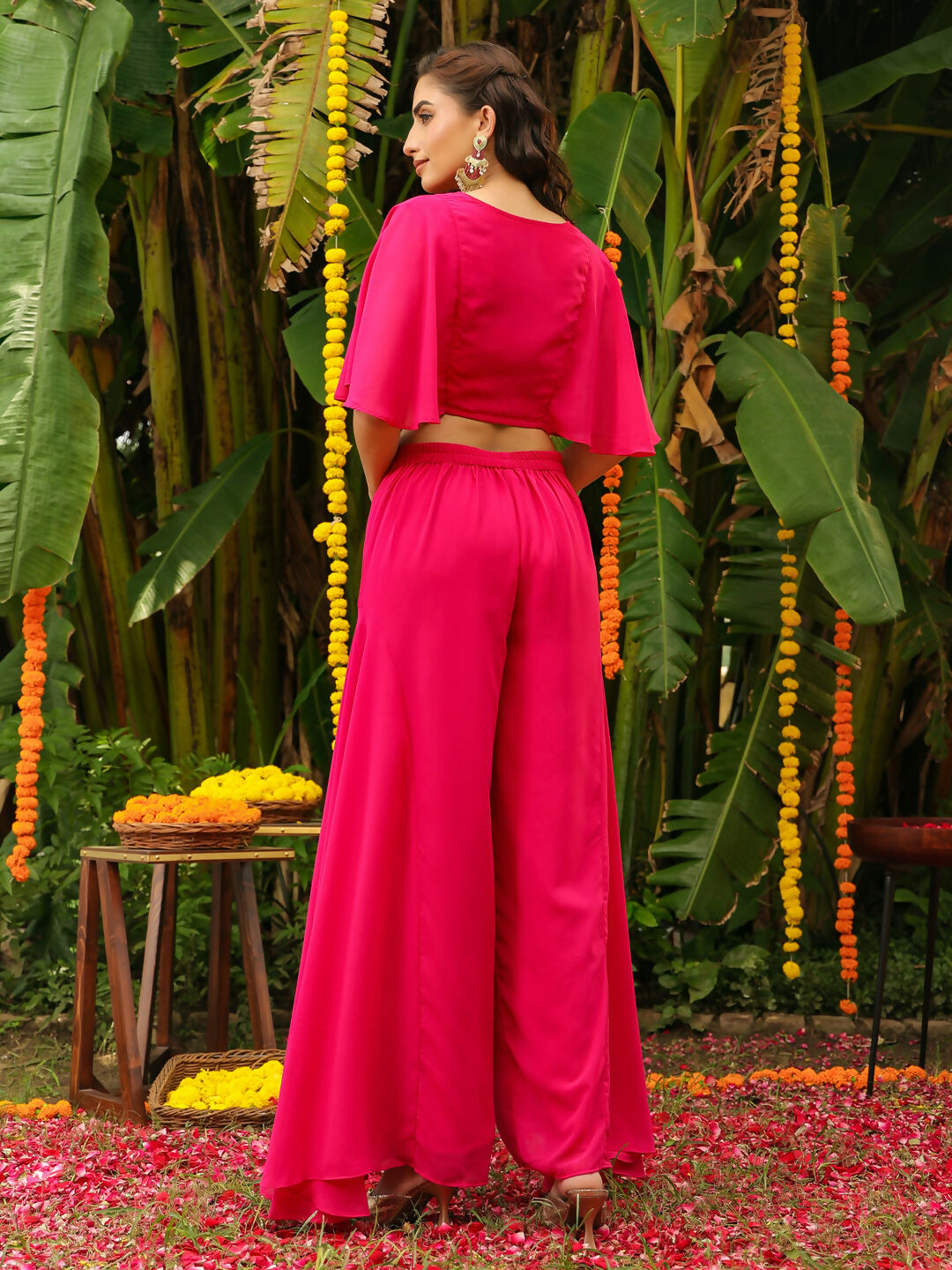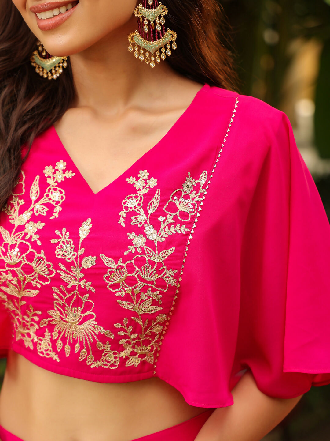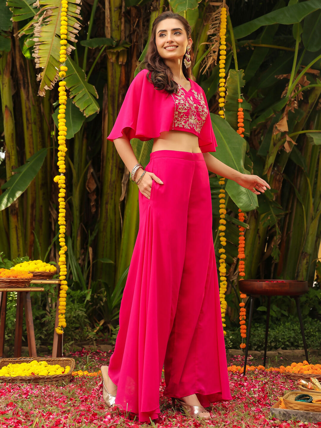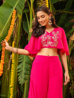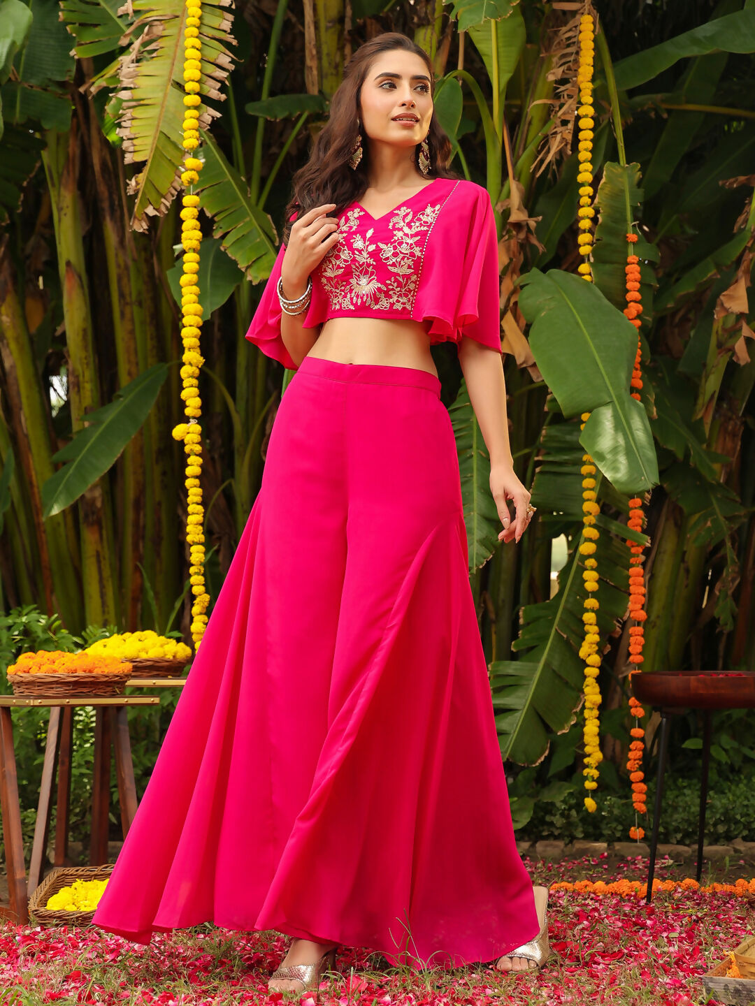 Janasya Pink Georgette Yoke Embroidery Co-OrdsAbout the Product: Package Contains: 1 Top :: 1 Bottom Top Fabric: Georgette Top Style Type: Crop ...