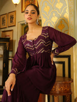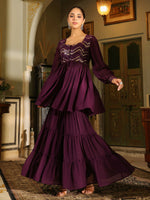 Janasya Purple Georgette Sequined Tunic & Bottom