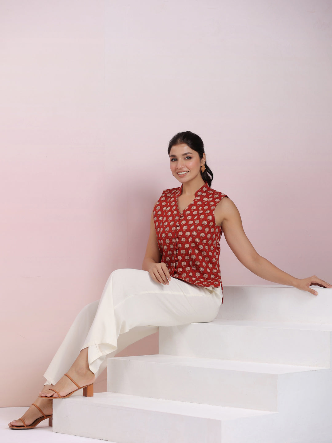 Janasya Straight Cambric Maroon JacketAbout the Product: Top Primary Color: Maroon Jacket Style Type: Straight Jacket Fabric: Cambric Jacket Co...