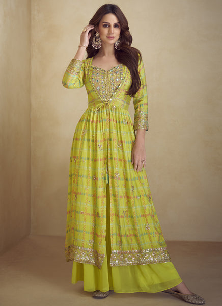 Vegaa Fashion Yellow Chinon Silk Digital Print Western SuitProduct Details:Wedding suit is the perfect choice for Indian festive or wedding event. ...