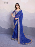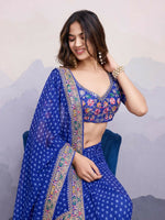 Blue Georgette Bandhani Printed,Embroidery Work Saree - Surkhi