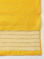 Janasya brings for you the best a-line yellow kurta set for your wardrobe which is apt for every occasion. This set features round neckline which has a delicate handwork on the yoke with a beautiful bandhani print all over. It comes along with solid pant with a detailing of bandhani print on the hem of it. Style it up with ethnic jewellery to complete the look.