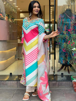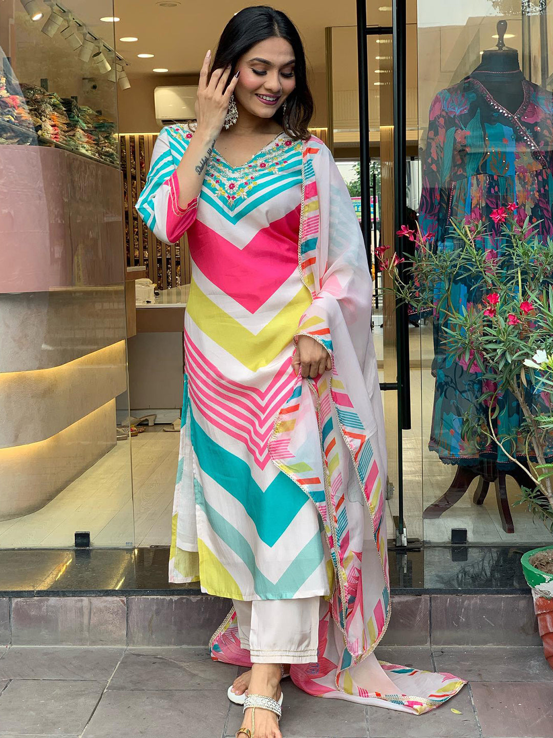 Kalini Chevron Printed Beads & Stones Regular Kurta With Trousers & Dupatta Product Details Pink & blue regular Kurta with Trousers ...