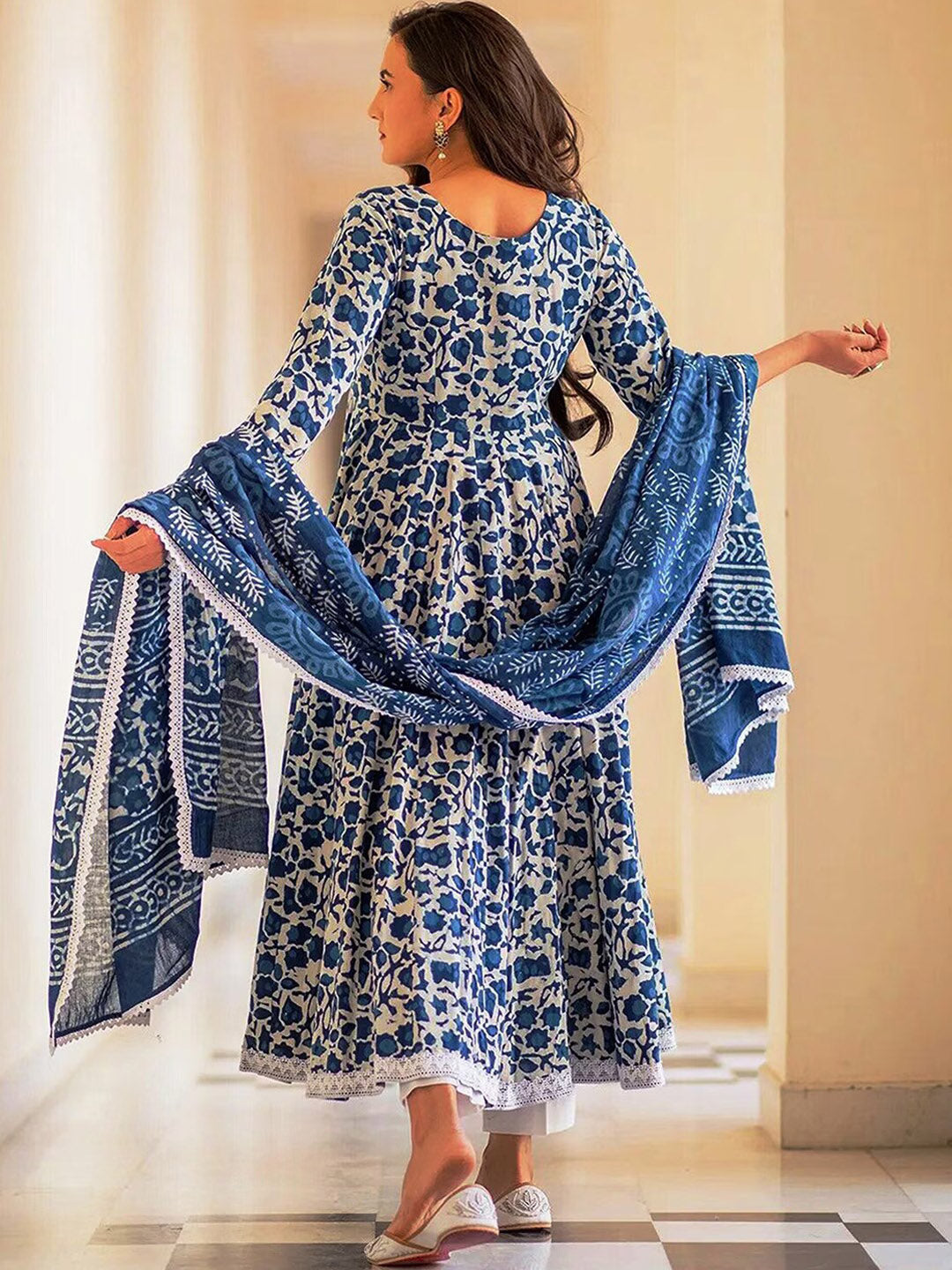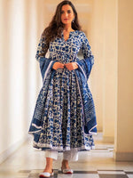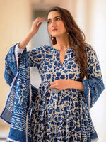 Blue regular Kurta with Trousers with dupatta