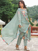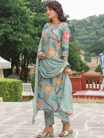 Kalini Floral Printed V-Neck Straight Kurta & Trousers With Dupatta Product Details Green printed kurta & trousers with dupattaKurta des...