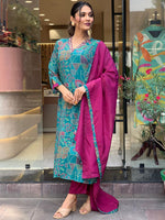 Kalini Floral Printed V-Neck Thread Work Regular Kurta With Trousers & Dupatta