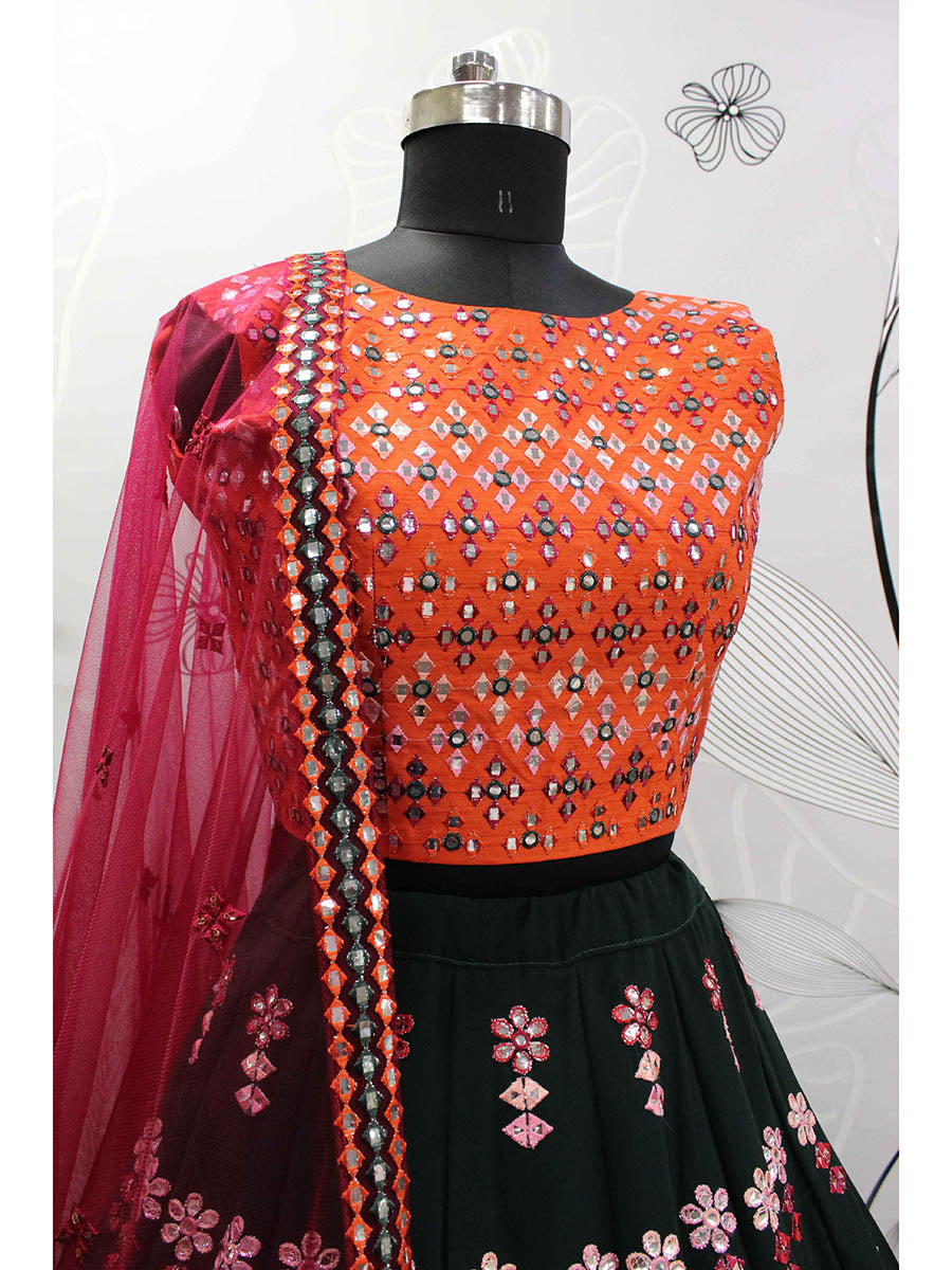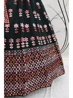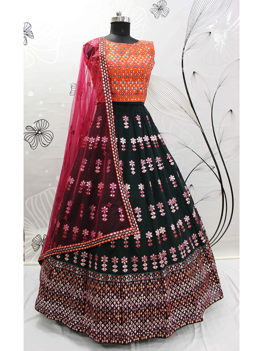 Myra Green and Deep Pink Georgette Embroidered Designer Lehenga