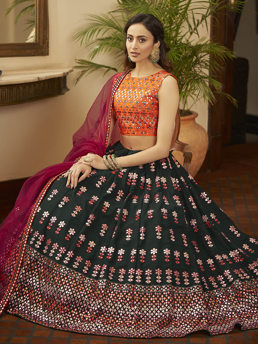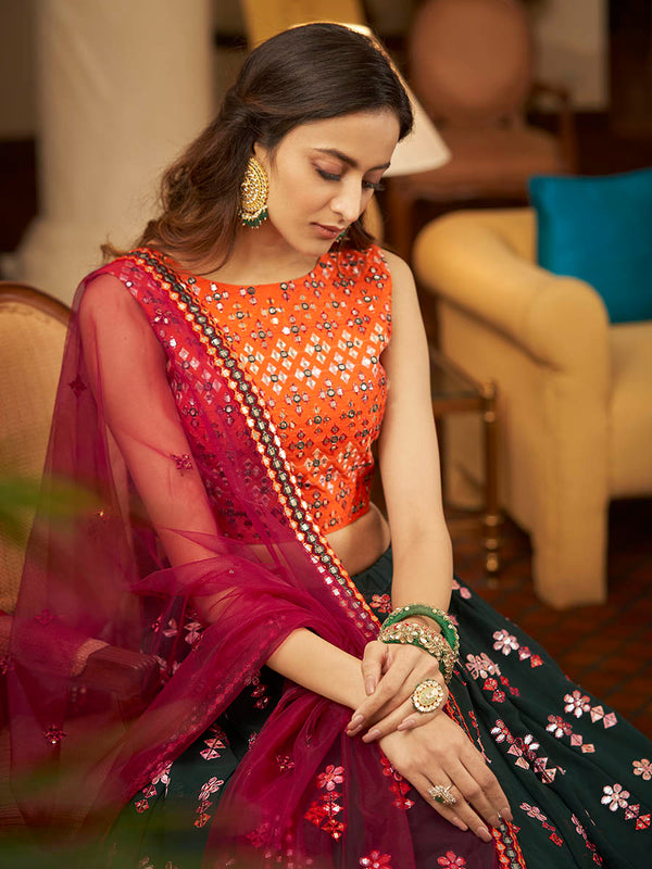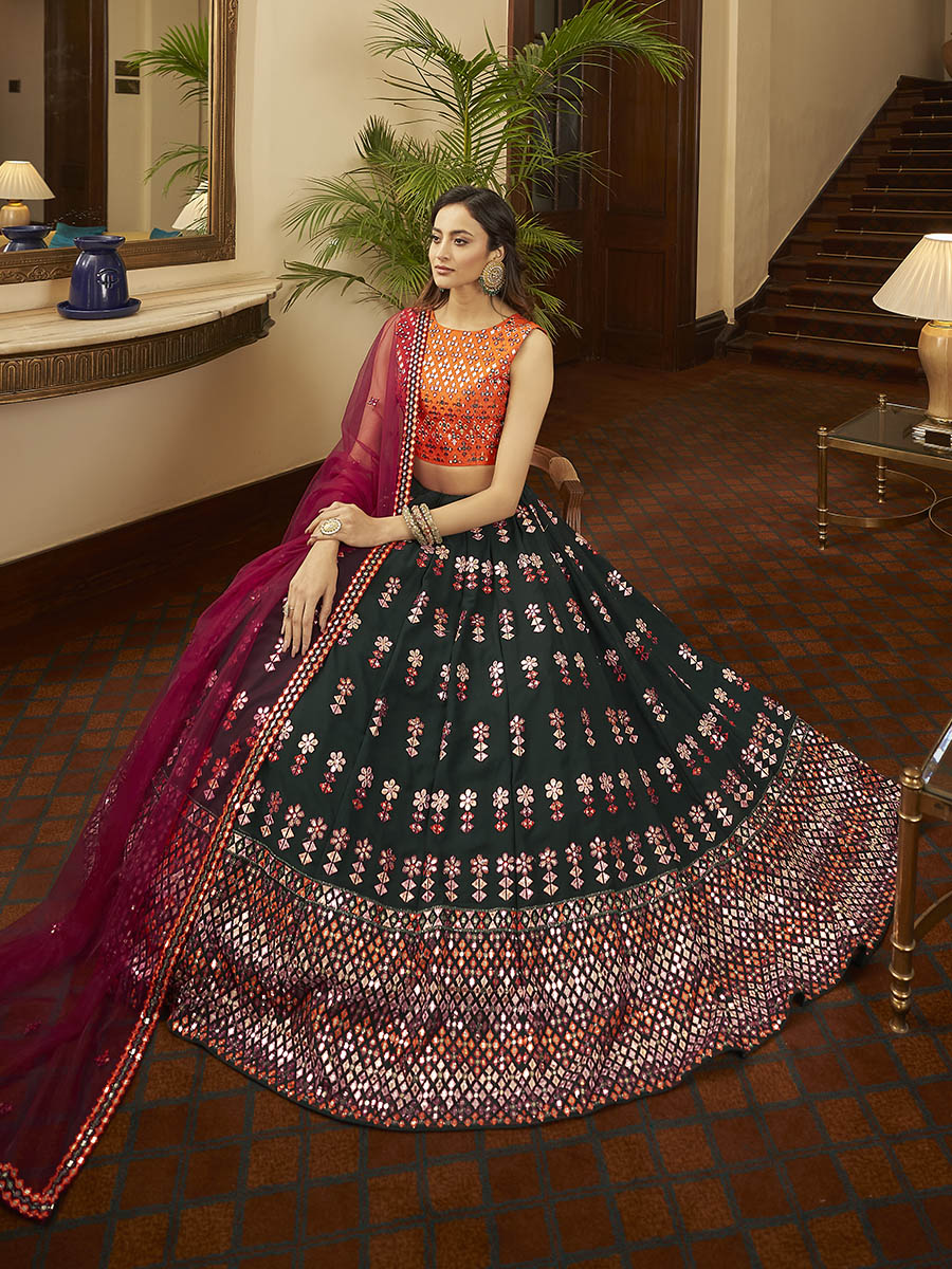 Myra Green and Deep Pink Georgette Embroidered Designer Lehenga - Distacart