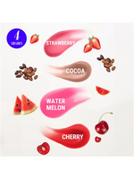 • Crafted with a non-toxic, FDA-approved formula, itas safe for all skin types and comes in four delightful shadesa”Strawberry, Cocoa, Watermelon, and Cherrya”providing a hint of color and nourishment.