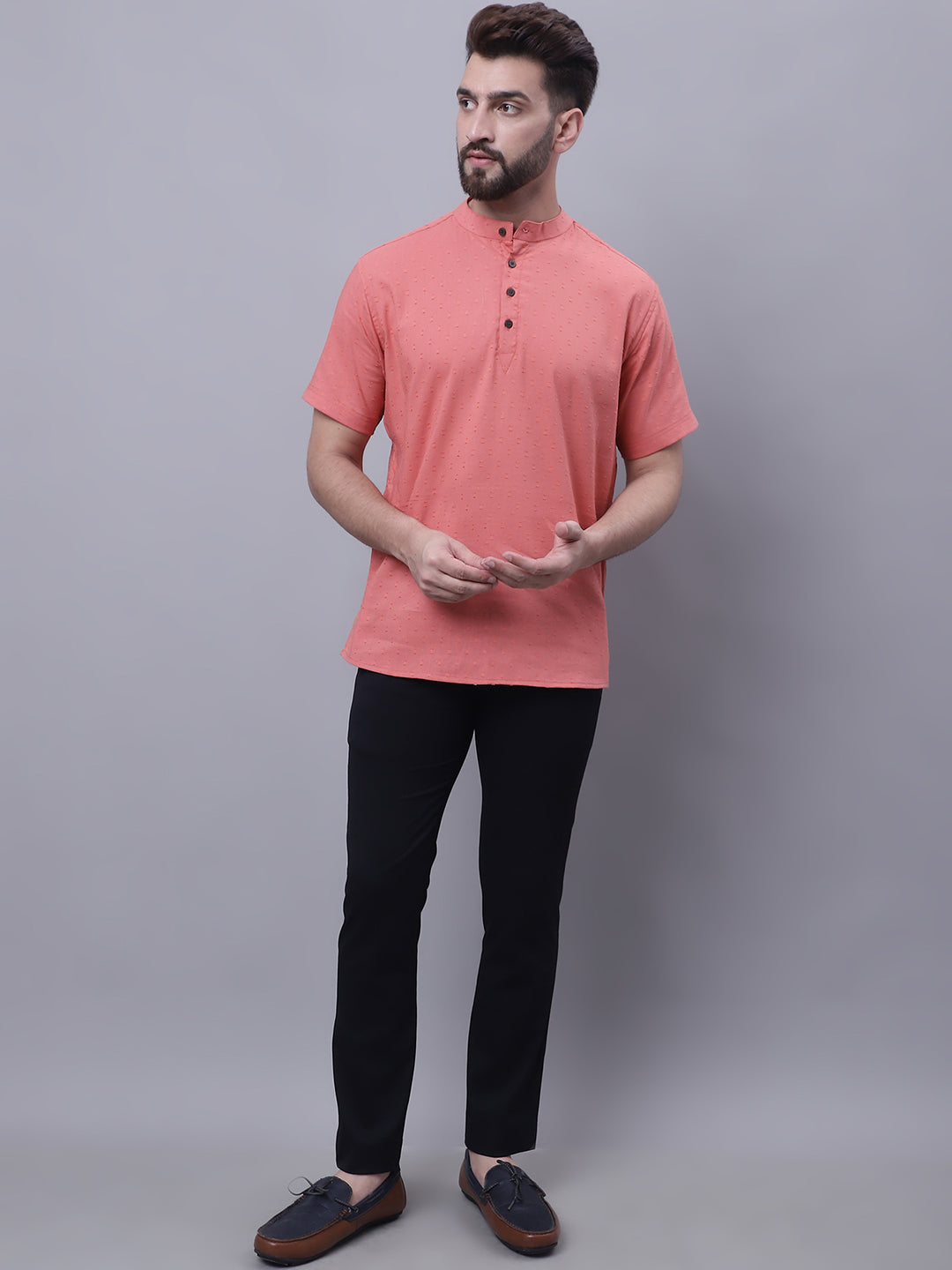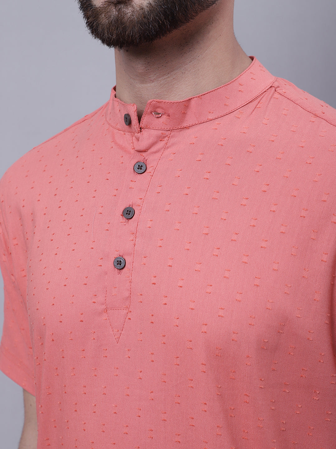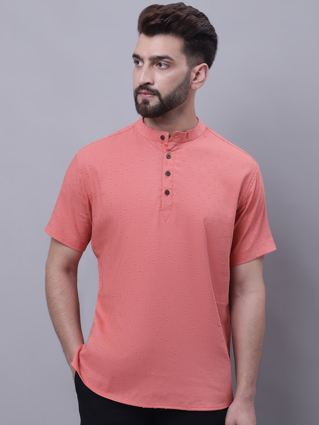 Even Apparels Peach Pure Cotton Short Sleeves Kurta With Band Collar About the product: Pure cotton short sleeves kurta with band collar. Addition...
