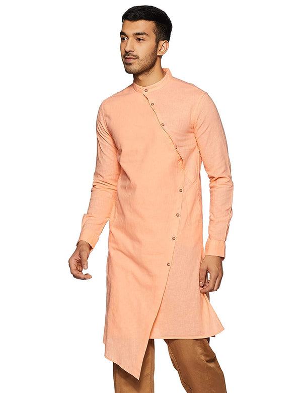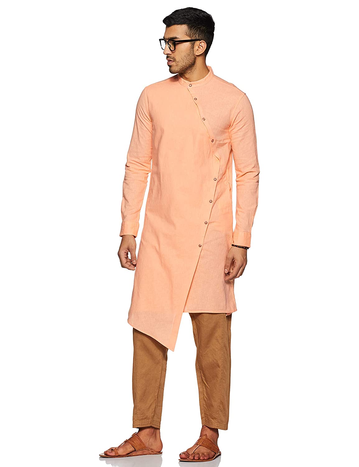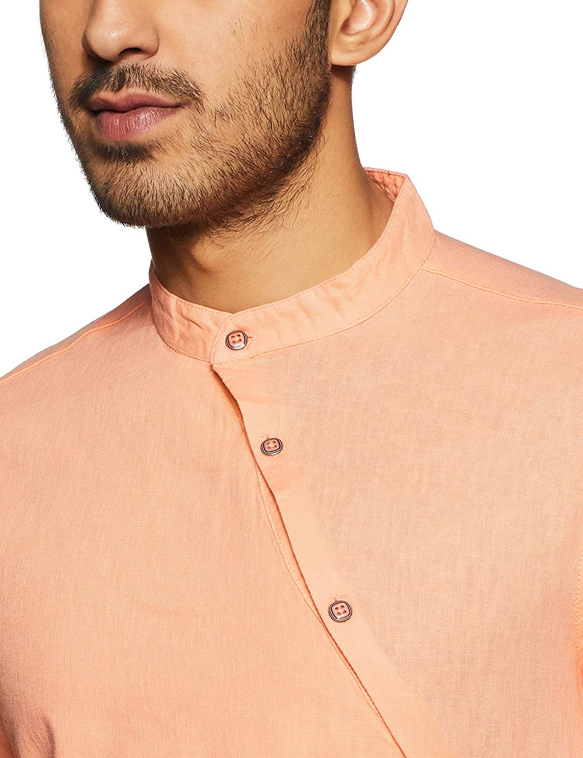 The Indian Garage Co Men Melon Kurta Care Instructions: Machine Wash Color: Melon Material: cotton Machine wash knee-long long sleeve round neck...