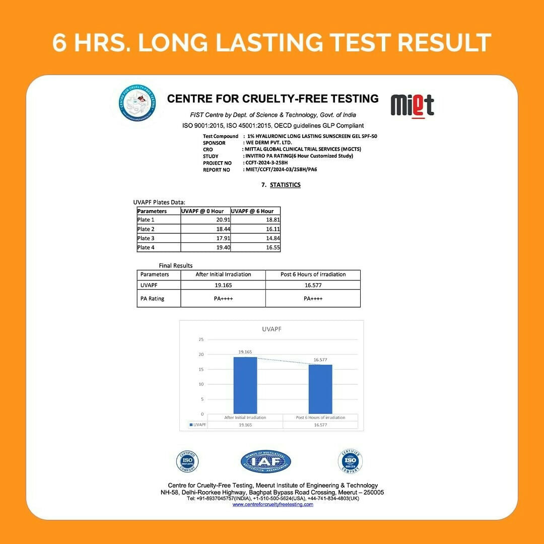 The Derma Co 1% Hyaluronic Long Lasting Sunscreen SPF 50 Pa++++ About the Product: 6-Hour Long Lasting Formula: Powered with Heat Shield Technology...