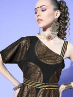 Ahalyaa Women Black Colour Crepe Printed Top Palazzo Set - S