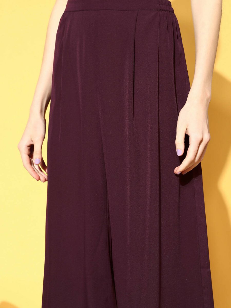 Ahalyaa Women Wine Colour Crepe Gold Glitter Print Kurta Palazzo SetSmart and stylish, this kurta set will make for a gorgeous addition to your eth...