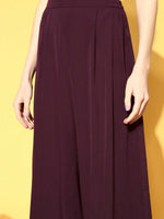 Ahalyaa Women Wine Colour Crepe Gold Glitter Print Kurta Palazzo Set