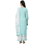 Anubhutee Women's Blue Kurta Palazzo with Dupatta Set