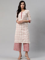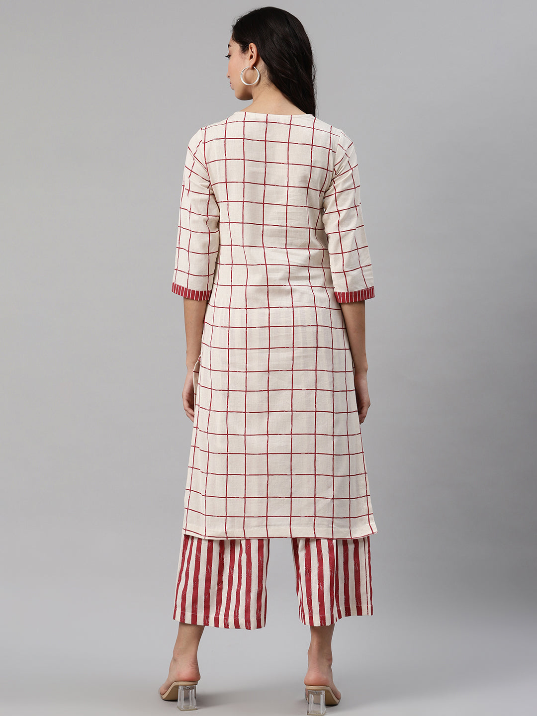 Biba Women Off-White & Maroon Checked Kurta with Palazzos