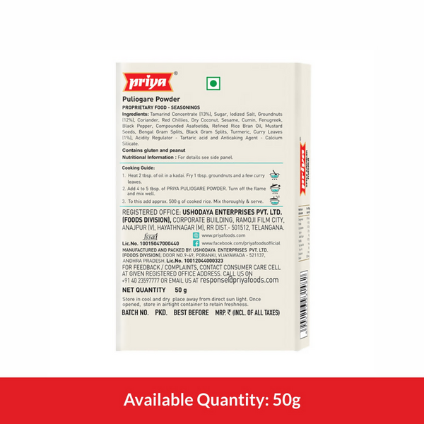Priya Puliogare PowderAbout the Product:Puliogare is an ever-popular traditional Iyengar dish from Tamil Nadu & Karnataka. Priya Instant Puliog...