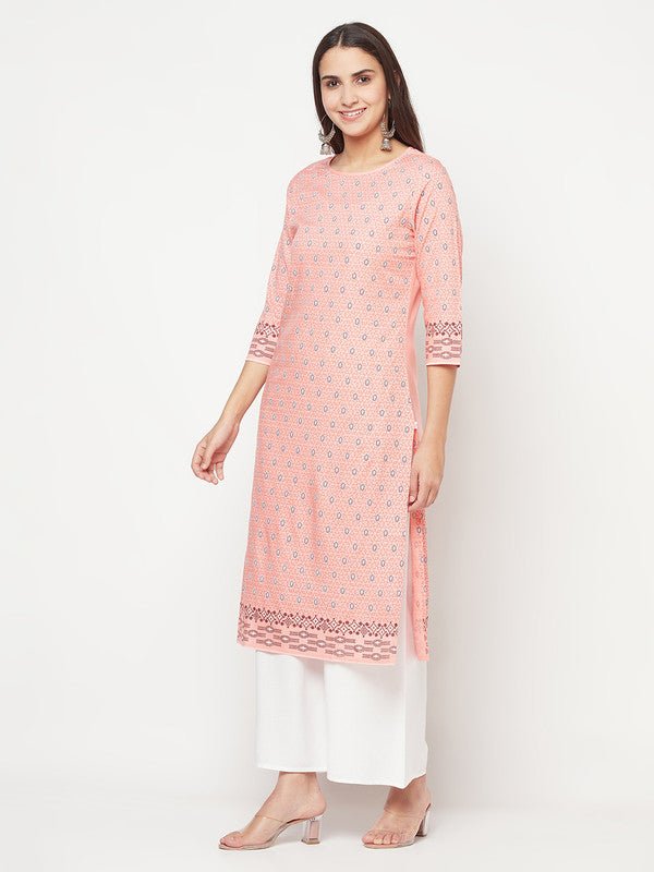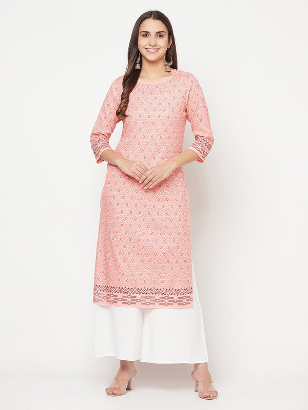 Aniyah Rayon Digital Screen Print Peach Color Straight Kurta - S