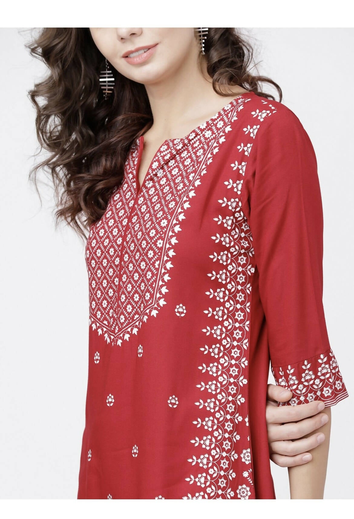 Cheera Embellished Daily Wear Cotton Blend Kurta - Red & White - XS-36