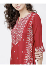 Cheera Embellished Daily Wear Cotton Blend Kurta - Red