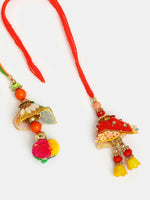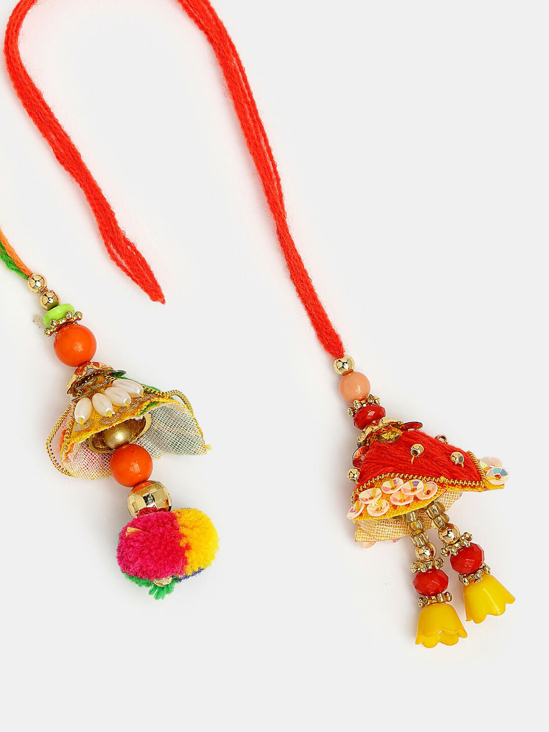 NVR Women Set of 2 Red Beaded Lumba Rakhi With Roli Chawal