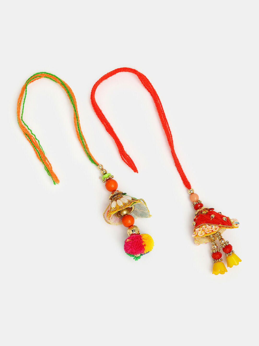 NVR Women Set of 2 Red Beaded Lumba Rakhi With Roli Chawal Style Note: Celebrate Raksha Bandhan with grace using the NVR Women Set of 2 Red Beaded ...
