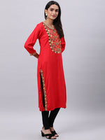 Souchii Women Ethnic Motifs Yoke Design Mirror Work Kurta - S