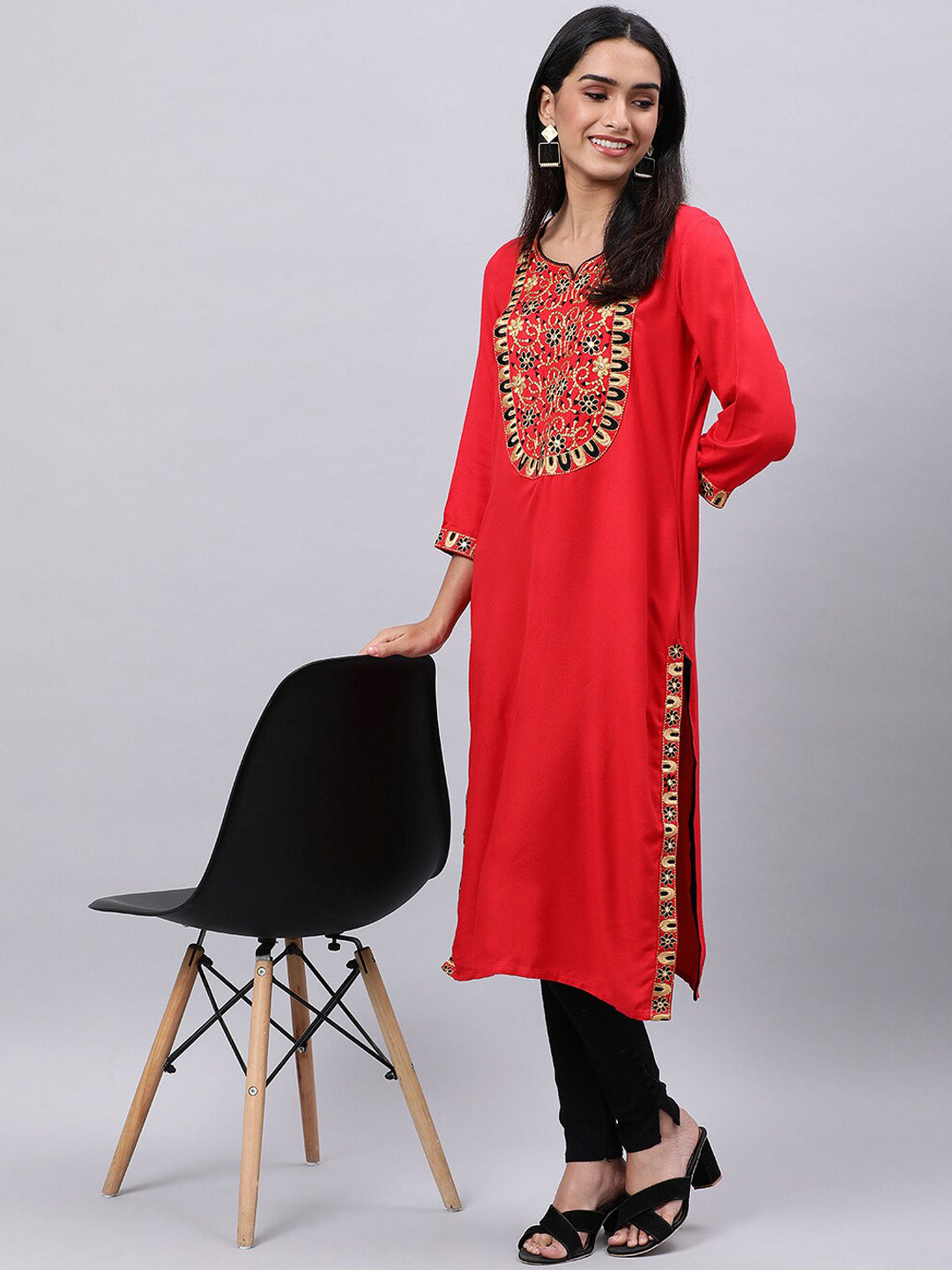 Souchii Women Ethnic Motifs Yoke Design Mirror Work Kurta - Distacart
