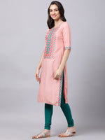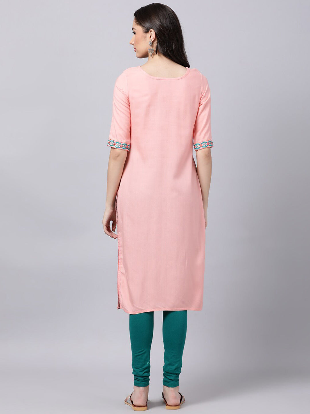 Souchii Women Peach-Coloured & Blue Ethnic Motifs Yoke Design Thread Work Pastels Kurta - Distacart