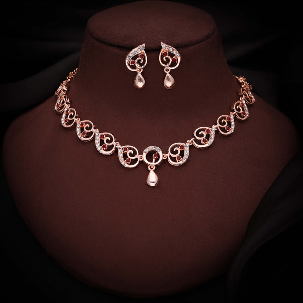 Tehzeeb Creations Brass Rose Gold-Polished Maroon Colour Necklace With Earrings