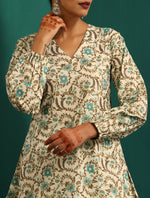 • Cotton Floral Printed Co-Ord Set with V-neck and gathered sleeve. Paired with elasticated waist pant.