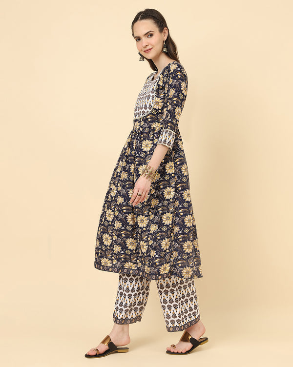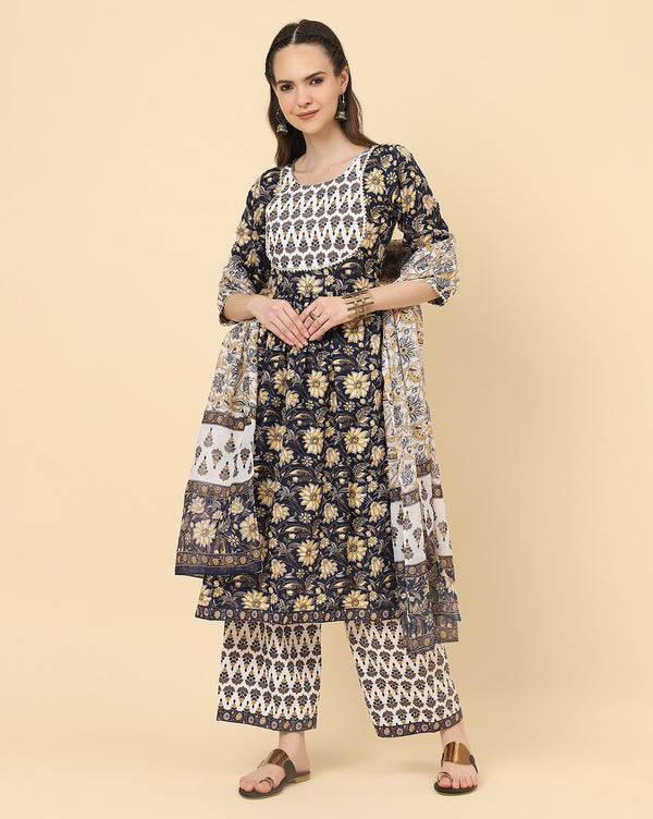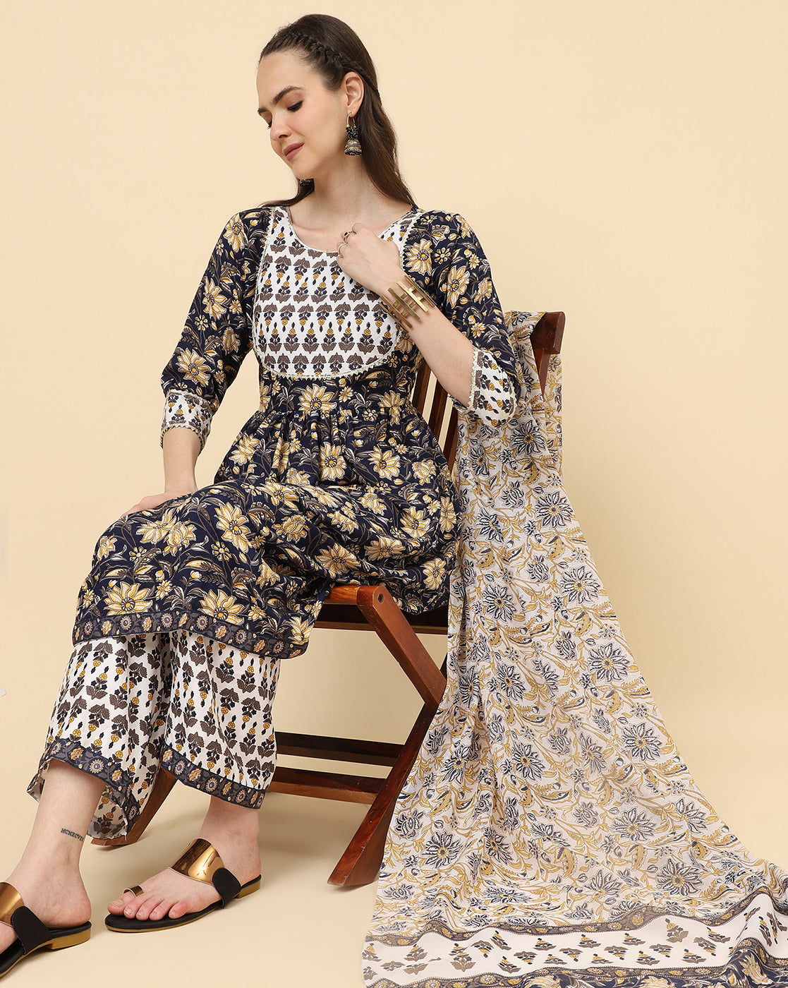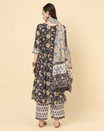 Varanga Women Black Viscose Rayon Printed Regular Kurta With Trousers & Dupatta - S