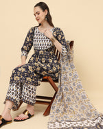 Varanga Women Black Viscose Rayon Printed Regular Kurta With Trousers & Dupatta