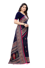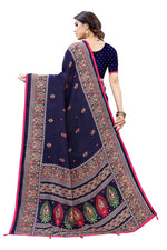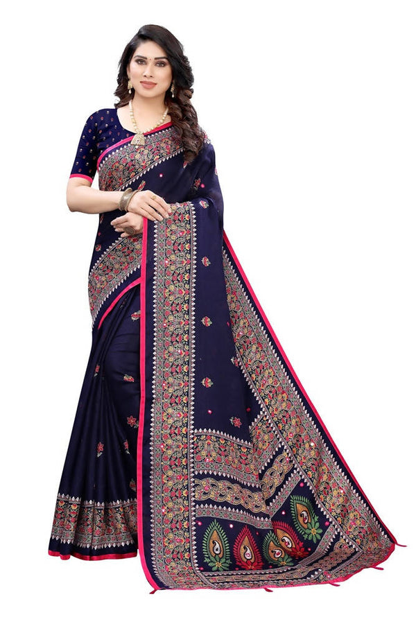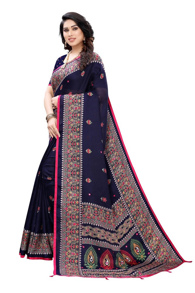 Vamika Blue Jute Silk Mirror Work SareeWork: Mirror WorkSaree Fabric Type: Jute SilkBlouse Fabric: Jute SilkSaree Length: 5.50 MtrBlouse: Yes (0.8...