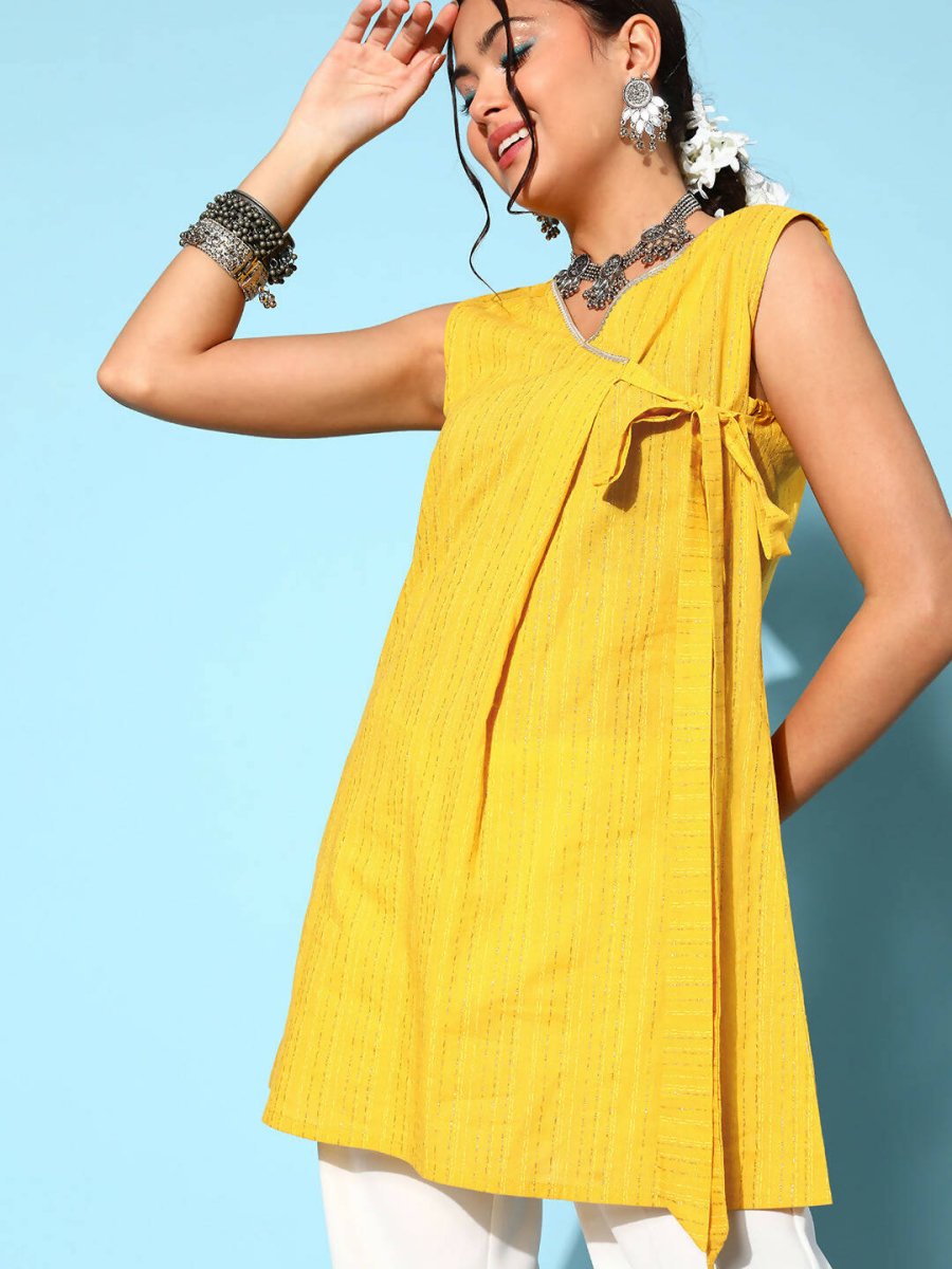 Ahalyaa Women Mustard Cotton Fluid Tie-Up Tunic