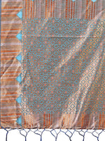 Astita Teal Blue Linen Cotton Saree with Woven Geometric Zari Motifs - Elegant Festive Wear for Women - Default Title