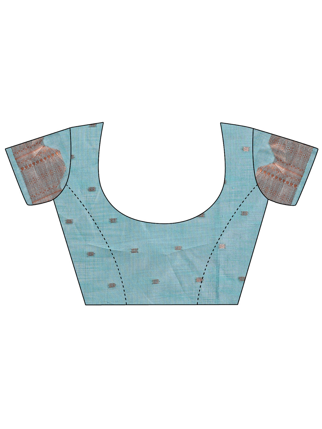 Astita Teal Blue Linen Cotton Saree with Woven Geometric Zari Motifs - Elegant Festive Wear for Women - Distacart