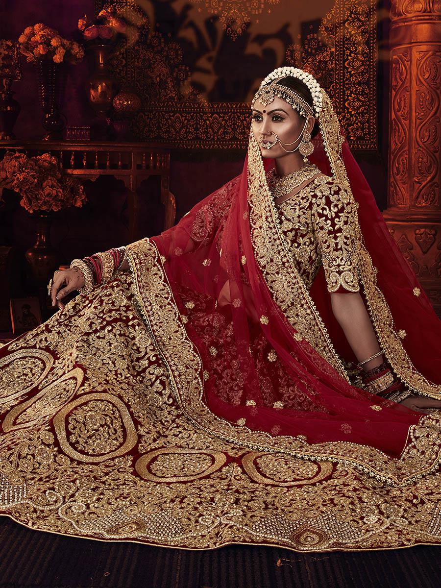 Myra Red Heavy Embroidered Bridal Designer Lehenga - Distacart