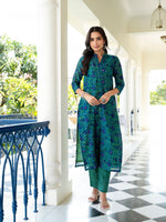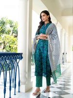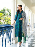 NOZ2TOZ Women's Floral Printed Knee Length Kurti And Pant Set With Printed Dupatta - Blue