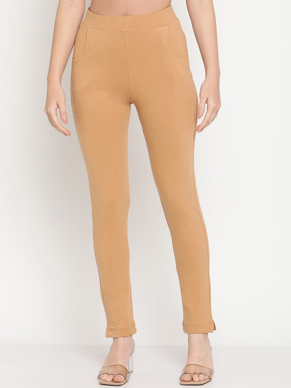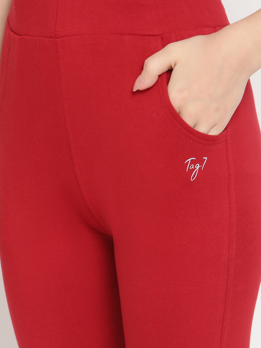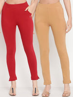 Maroon & beige solid Kurti pants, each has an elasticated waistband, slip-on closure, and 2 pockets