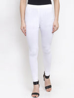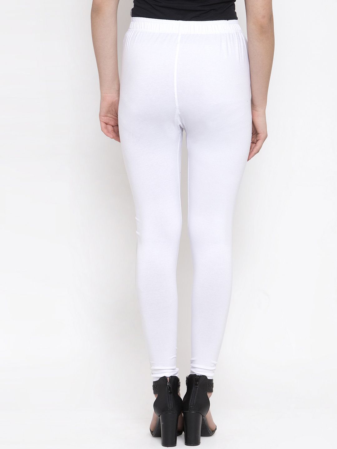 Pack of two solid churidar-length leggings in white and orange, each has an elasticated waistband, and slip-on closure
