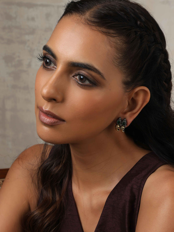 trueBrowns Silver Gold Tone Stud Earrings - Freesize